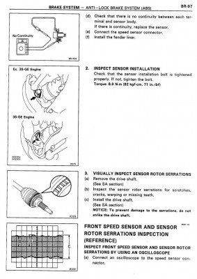Тоже была проблема с датчиком абс. Новый у нас стоит $300. Ездил 2 года с лампочкой. Проходил ТО. И тут на очередном ТО меня отправили на устранение неполадок, в т.ч и абс. Подумав, решил сварганить сам. Только проволоку для катушки нужного диаметра не нашёл. Сопротивление у меня получилось ок. 450 Ом. Поставил вплотную к шестерни, но чтобы не сильно давило, а то стержень сотрёт ещё. Сначала попробовал с резистором 560Ом - тестер сказал, что нет импульсов. Без резистора - отлично. Ну и поставил без него. Думал, что блок начнёт ругаться. А он принял как родной и всё заработало. И уже 2 недели как работает. Гонял на 90км/ч, 60, 40. и т.д. Как часики.