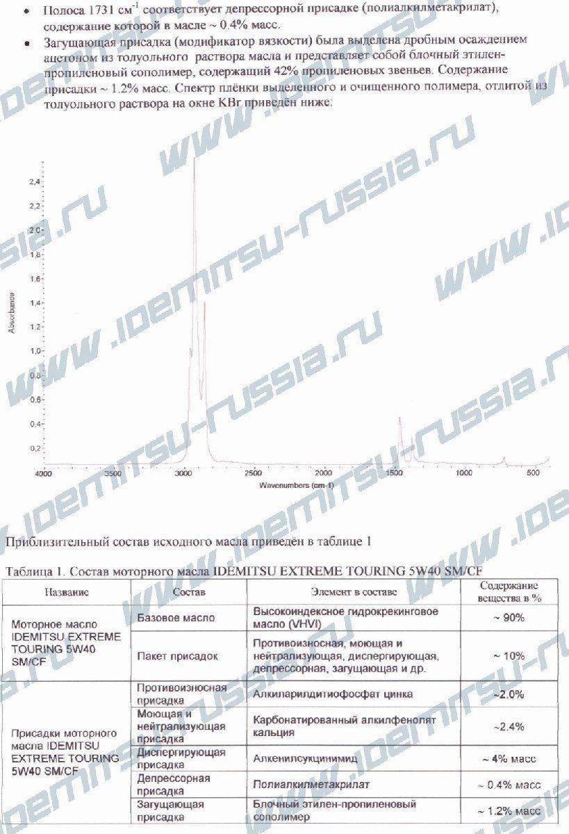 Вопрос 1 к человеку, который проводил анализ - какое масло он отдал на экспертизу, отработку или новое? об этом он промолчал, либо как не квалифицированный человек попросту не сделал на этом акцент, а надо бы было и вот почему - во первых, при анализе отработки в ней может быть что угодно, и молибден в том числе, который попал туда вместе с бензином (об этом расскажу в билжайшие дни, как выложу спектральный анализ, осталось только защитить документ от плагиата на просторах инета). и к тому же, если молибден присутствует в отработке, то надо обязательно смотреть новое масло и сравнивать. молибден может быть в масле, но он АБСОЛЮТНО БЕЗВРЕДЕН, является составляющей противоизносной но НЕ ПРОТИВОЗАДИРНОЙ присадки, как написано в заключении.
