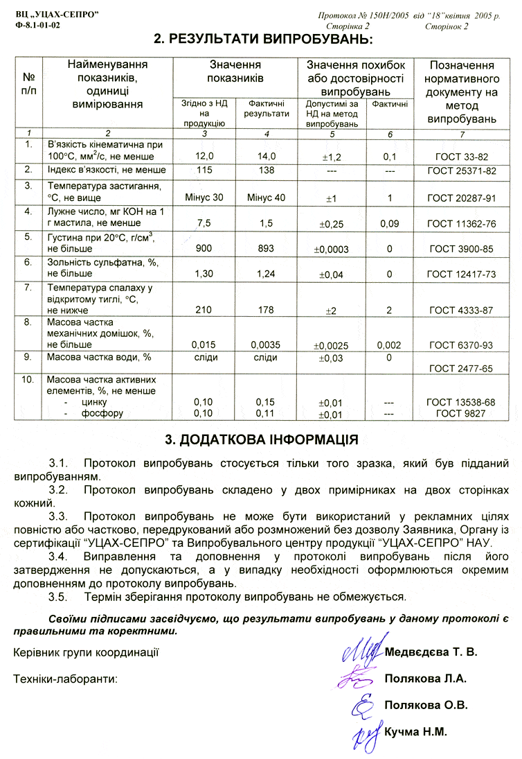 Кстати, как раз попался скан протокола испытаний на износ и старение масла. Язык Украинский, но надеюсь читабельно.