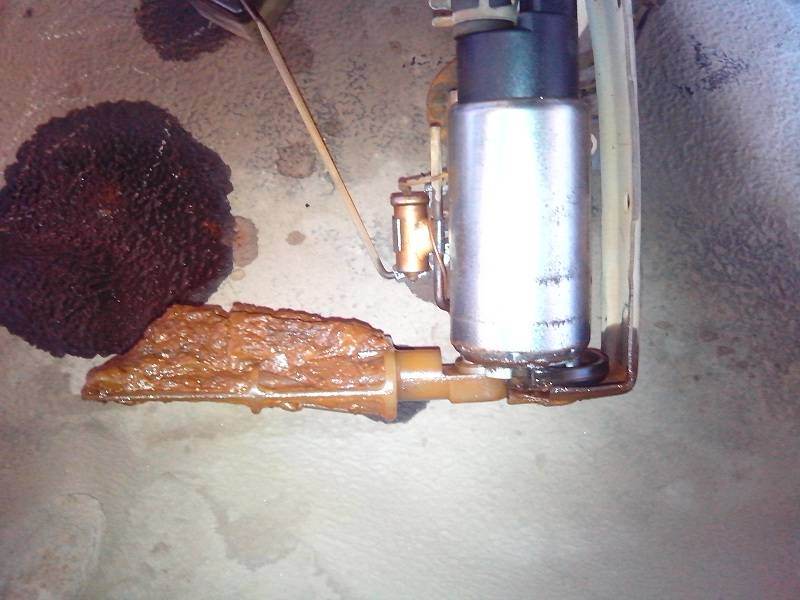 Доброго вечера, многоуважаемые форумчане. Речь, как вы догадались, пойдет о бензине и его качестве. Тем новых плодить не буду и напишу в этой. История такова : решил я сначала поменять сеточку в баке, купил, на выходных вскрыл бензобак из салона. Смотрю, плавает в нём какой-то шмурдяк, да и ржаветь уже начал. Время металл не щадит. Плюсом ко всему прилетало по моему старому баку не хило. Заказал у нас на форуме у redkino-info, за что ему огромное спасибо, бак с его каришки. И цена устроила и ждать был готов. Бак пришёл в лучшем виде, я его дополнительно заантикорил и, с мыслью о зарплате, он ждал своего часа на замену. Случилась у меня небольшая подработка, но для этого нужно было покататься по нашей "любимой" после того, что произошло области. Залился под завязку и поехали. Ездили 2 дня. Ну всё, дела приделали, можно и домой. Еду, вижу заправку. И название-то известное, а не фиг знает что. Смотрю на указатель уровня топлива и думаю, не, не дотянем до Костромы. Заеду ка я и плесну немного. Литров 15. Заправился, отъехал от заправки километров 50 и началось. Тяга исчезала на глазах, машина не ехала вообще. Глох при каждом сбросе газа. Остановился. Машину трясёт как эпилептика. Заглушил. Подождал минут 15. Завожу, всё тоже самое. Подождал ещё часок. На дворе, к слову сказать, 2.30 ночи. Завёл, вроде лучше стало. Ну надо же как-то до дома добираться. инструментов в багажнике 0. Поехал. Крехтя, пердя, дёргаясь и глохнув добрался до дома. Поставил машину у дома и измученный лёг в койку. С утра позвонил друзьям в сервис, описал проблему и они согласились меня принять. Сажусь в машину, завожу и она работает как часы. Ну, думаю, пронесло, а не тут то было. Отъехав метров 100 от дома вся свистопляска началась с прежней силой. Добрался до гаража где бак лежал, забрал и в сервис. Ребятам в сервисе всё рассказал, машину подняли на подъёмнике, сняли бак, вытащили бензонасос и тут надо было видеть выражение их лиц. Но, я думаю, у вас будет такое же после просмотренных фото. Ну да хватит текста, теперь фото того, чем я заправился. Ах да, прошу прощения за качество фоток, они с телефона.