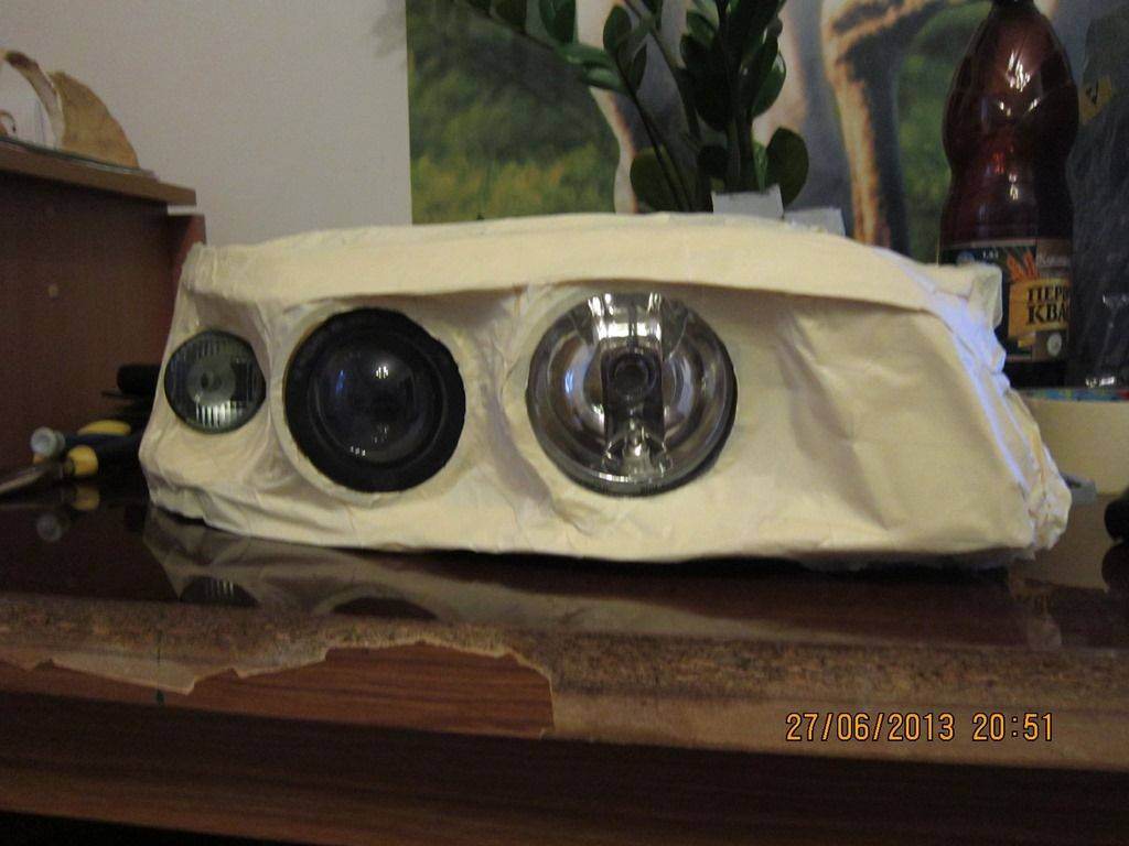 Вобсчем, неспешно, продам наверное свою модульную оптику из данного проекта. Фары собраны в корпусе АГ второго поколения, переделаны под корректор, изготовлена маска из стеклопластика (по маске есть косячки, надо дошпаклевать и дошкурить.), модули оригенальные HELLA. Ценник видиться в районе 12т.р. (поворотники в комплект не входят, потому как зделаны стрёмно  ) Как то так  .
