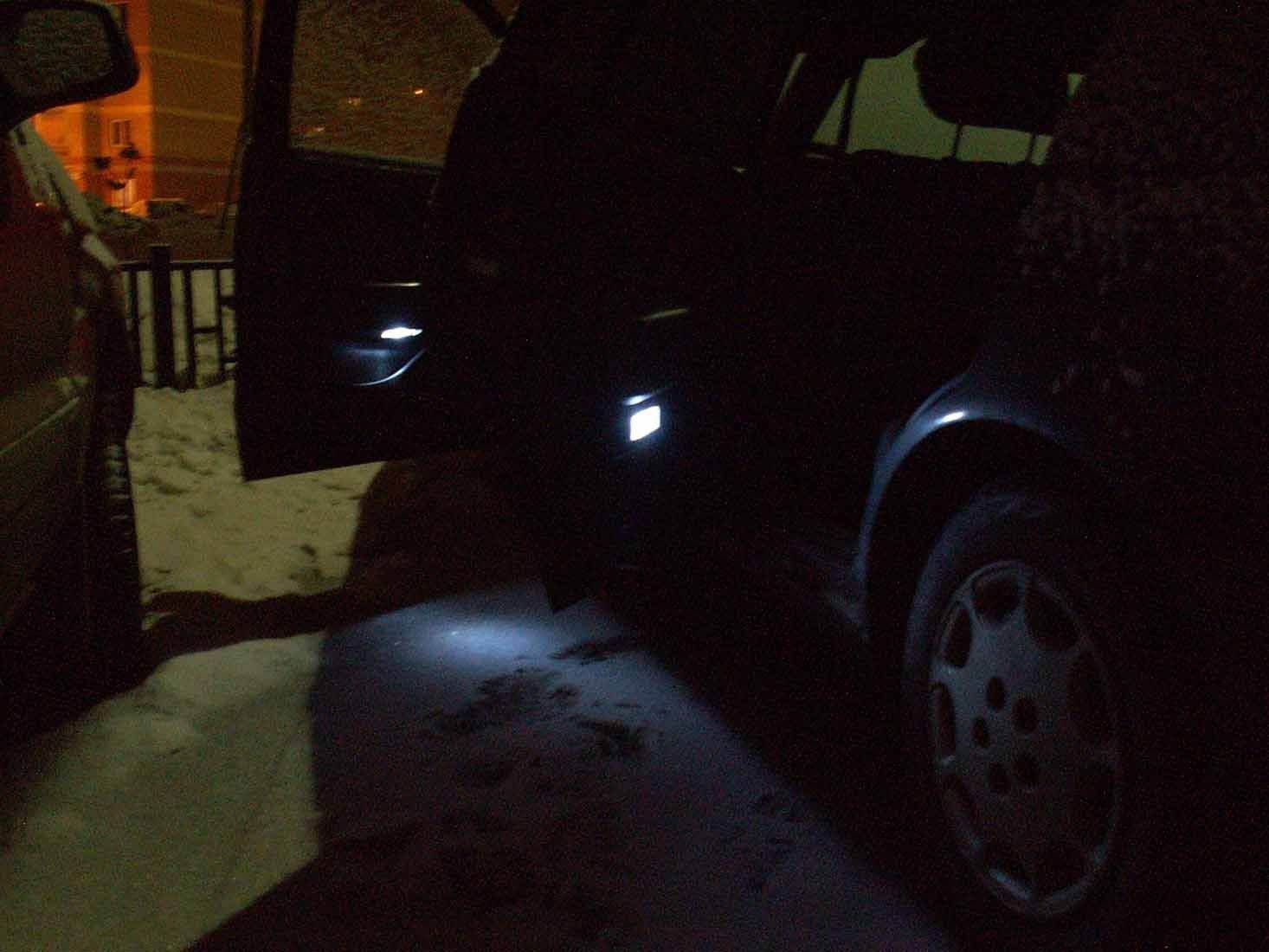 а что за фонарики, очень достойно получилось. В темное время как раз куда надо и светят. + Можно в заднии двери вмонтировать при большом желании.