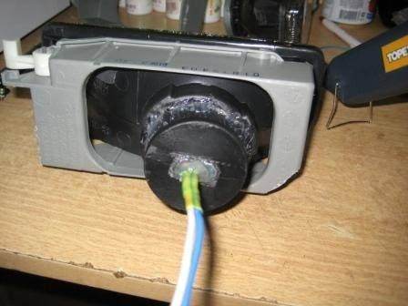 10. через отверстия в крышке протащил провода и закрепил с помощью того же клеевого пистолета. Вложение: