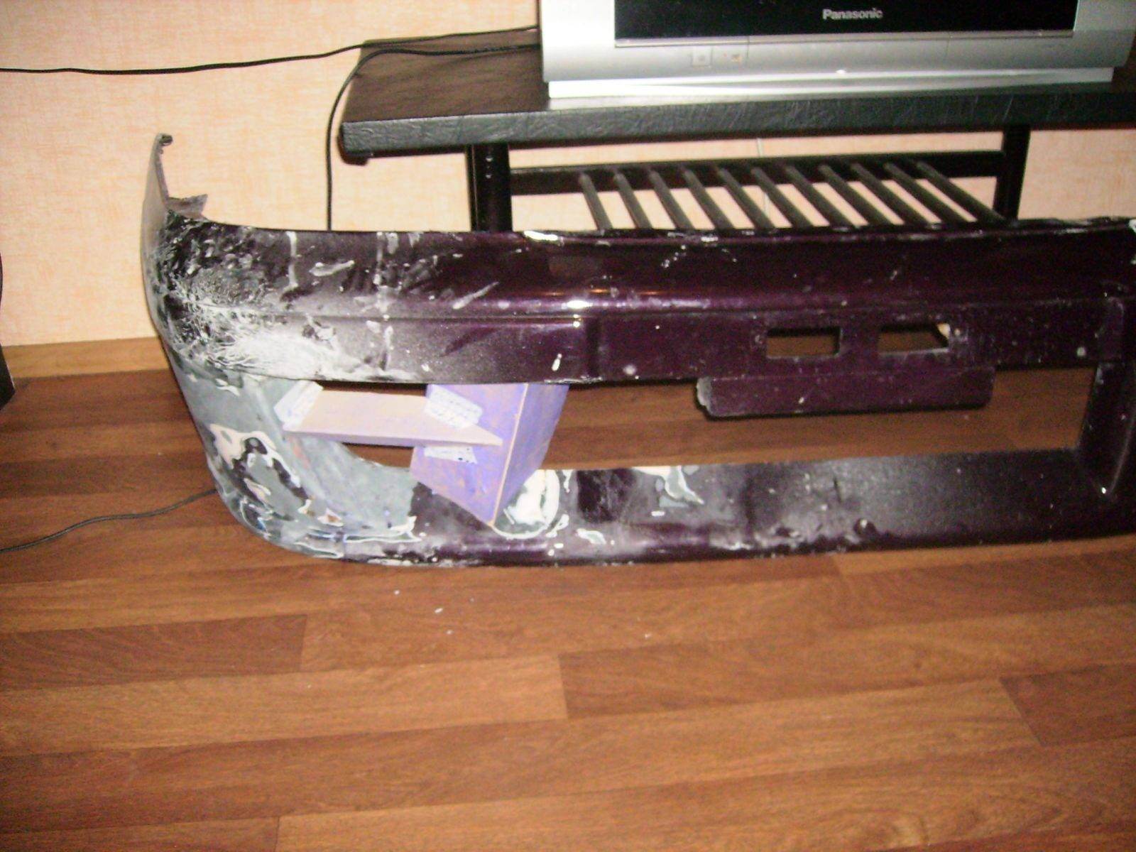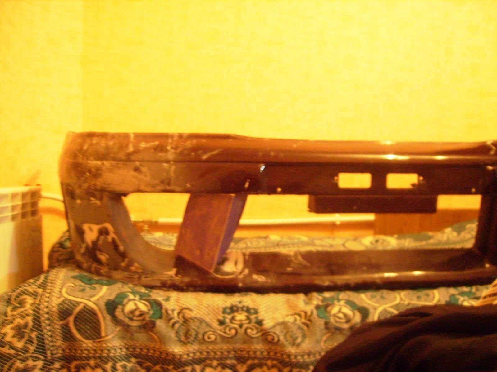 Ну что ж продолжим,отремонтировал наполовину бампер,вырезал жабры по бокам,чисто для красоты.Скреплял по новой правую пострадавшую сторону на сетку,в родной впаивал и сверху родной пластмассой пропаивал,к накладке на стекловолокно,потом еще слой сетки чисто на родной и пропаивал местами,это чтобы стекловолокну было за что зацепиться,так как на родном уже писал ничто не держиться,сверху еще для усиления слой или два стекловолокна,расписал для примера,мож кому пригодиться.Фоты процесса.