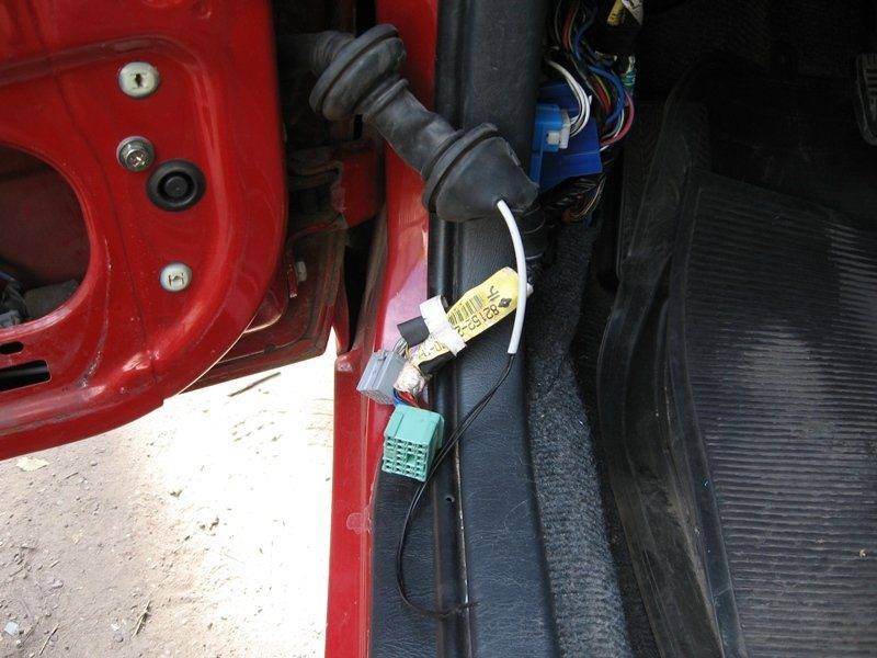 Разъем IN1 расположен у правой ноги пассажира. Вот он также с поключенными белыми проводочками