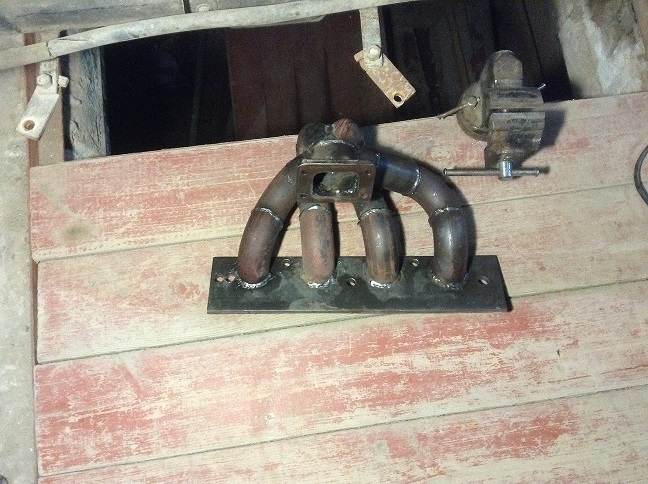 Взял колектор 4а чугунный 4-1 ,с тремя шпильками на выходе ,турбину от твинтурбового субаря .