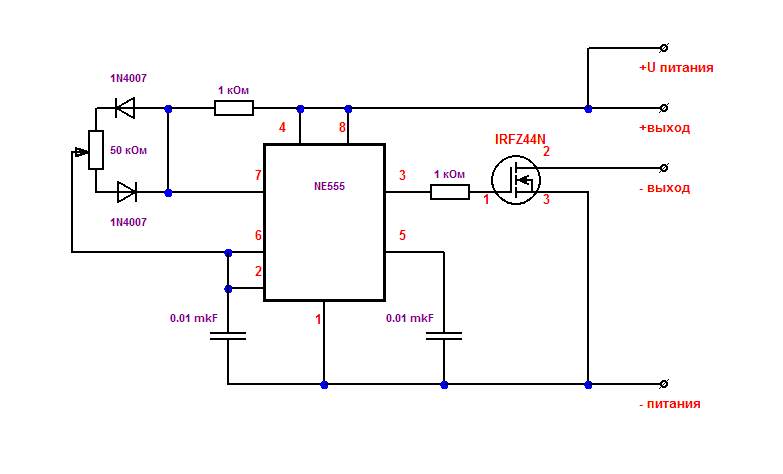 Если присмотреться внимательно к схеме, то видно, что регулировка яркости реализована как раз по минусу.  По плюсу тут работает только блок плавного розжига.