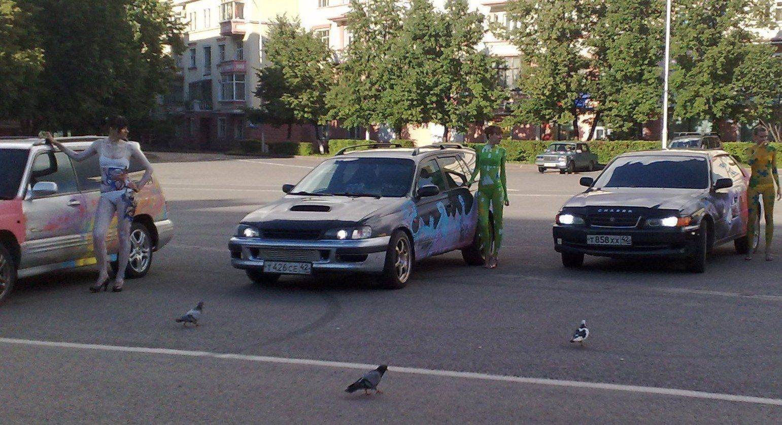 раскрас машины конкурс граффити был аэрозольным мелом машины разрисовали потом водой смыли