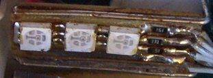 Mouflon писал(а): 2Lifeyar Сделал платки для светодиодов, тестовую плату для тиньки в дипе (что бы если что можно было выдернуть, и поличить её доктором). Вопрос на засыпку - по даташиту для диодов вроде как 60 мА ток при 3.2 v. Поставил на 3 светодиода 100 Ом резисторы - кажется что в полную силу слишком ярко светят. Ты какие резисторы ставил? Привет! Да, 100 Ом - мало. На зеленый и синий - 150 Ом, на красный - 330 Ом. В стандартной ленте такие стоЯт. Ну, естественно, на 3 соединённых последовательно светодиода. Вот на этой фотке, видно.