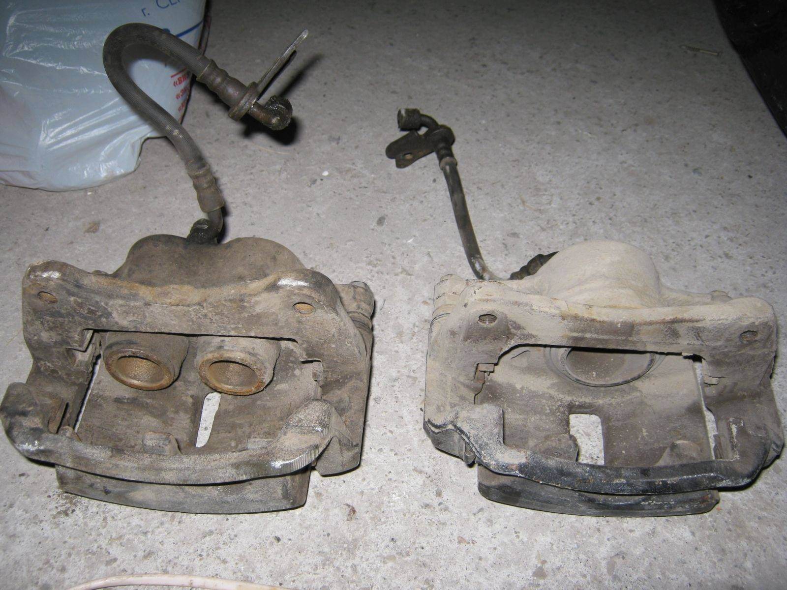 Короче с задними больше всего намаялся,по времени дольше,но ничего сложного,ну и не забудьте прокачать,я делал в одного,так что прокачивал один,передние старый сначала суппорт снял,но шланг не откручивал,так и висел на нем,пока новый суппорт не поставил,потом шланг перекрутил на него,так что вылилось немного.Сел в машину,качнул раза три,поставил между педалью и сидением подходящюю палку,ну и соответственно воздух через спускной таким макаром удалял.С по тому же принципу,как будет возможность обязательно вдвоем нормально прокачаем.
