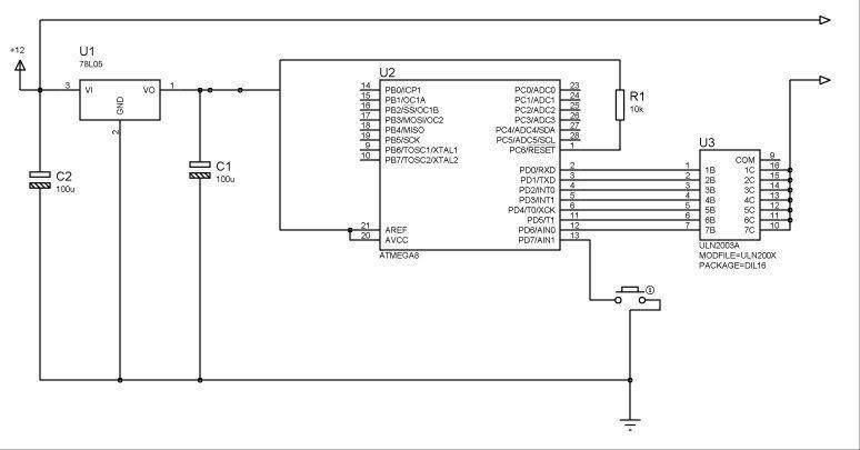 Это был регулятор для паяльника (Отцу собирал) с цифровым управлением...  Схема простейшая как писал 7805 + Atmega8 + кнопка + светодиод через резистор.