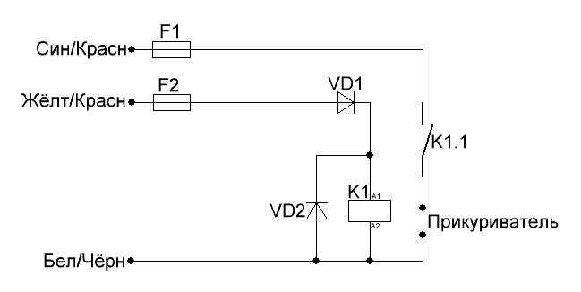 Комментарий к файлу: Однако торчащий вид сего устройства никак не устраивал, а также хотелось придумать автоматическое включение тройника после запуска двигателя. В результате была придумана вот такая схема
