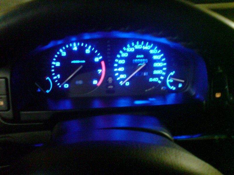 Точно так же делал на Цивике,только красным цветом,да и стрелки выкрашивал люминесцентной краской и направлял на них два ультрафиолетовых диода