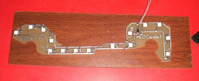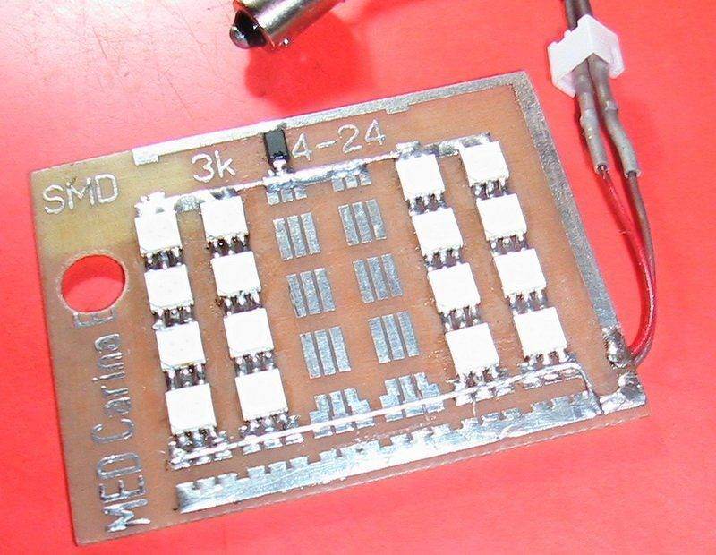 Начнем с печки ,плата универсальная проверена на англичанках и японках. Самая тонкая часть заменена проволочными перемычками для упрощения установки и разницы в габаритных размерах между японками и англичанками. Диоды на плате собраны в цепочки по 3шт+резистор ,резистор SMD расчитывать под ток 20ма соответственно цвету и ТТХ устанавливаемых диодов. Я ставил 3528 - для белых и синих 220-390ом ,для красных 420-610ом(завышал специально чтоб уменьшить яркость).От цепочек в 4ре диода отказался полностью - слишком сильно реагируют на перепад напряжения в бортовой сети.