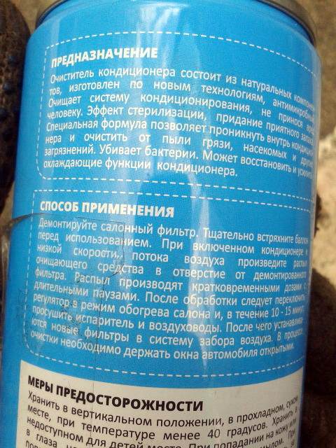 Прикупил при случае такой баллончик. Заправил кондей, дождался хорошей погоды и решил попробовать. Все сделал по инструкции, вынул фильтр салона, потряс баллон и начал заливать содержимое в полость фильтра. И оттуда пошла вылезать плотная пенная масса! Первое ощущение что это монтажная пена! Потрогал вроде мягкая. По особенностям нашей конструкции пришлось закрывать крышку фильтра. Иначе вся пена выбрасывалась наружу в ноги водителя. Через некоторый промежуток времени снова открыл и снова налил содержимое баллона. Попробовал на салонном фильтре. Вроде отмывает. В результате в салоне запахло еле уловимом запахом лимона. Посмотрим что будет дальше…