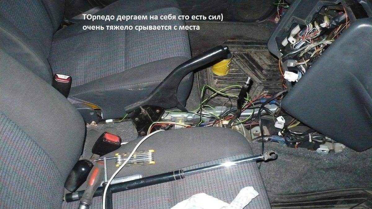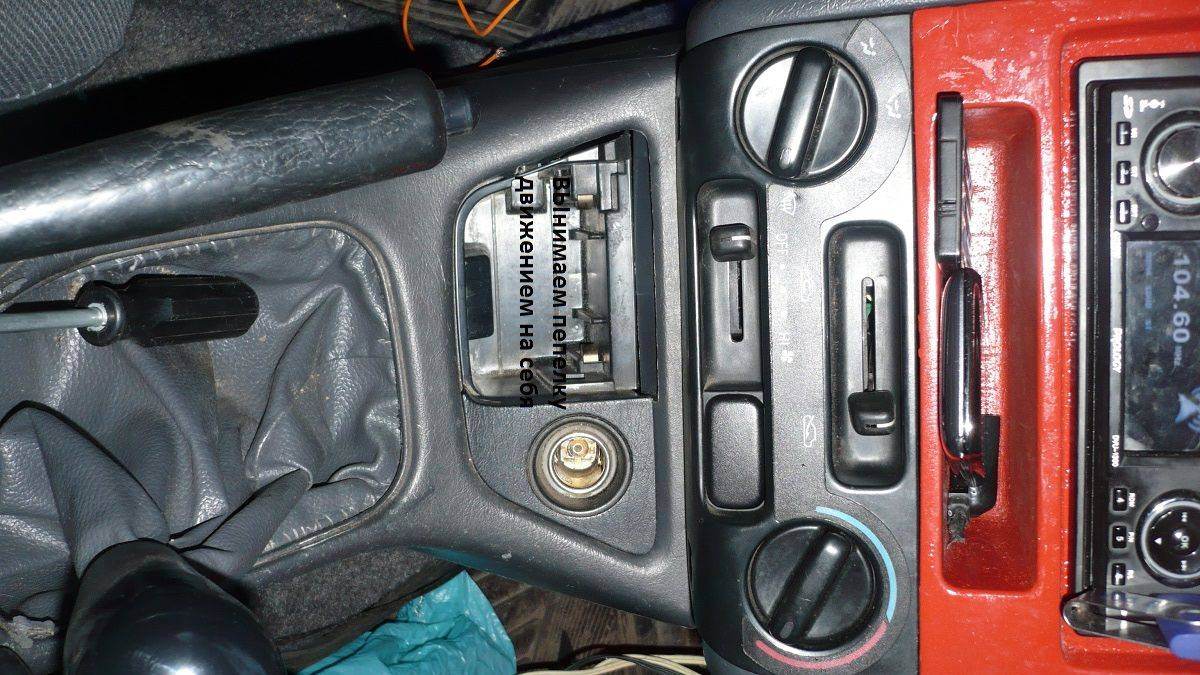 max32Молодец! Не указал, что панель пепельницы/прикуривателя держит штифт (наверное, так можно его назвать). Если пепельницу вытащить, то на левой стенке видно его будет. Надо его вытащить. Кстати, магнитофон у тебя неправильно закреплён. Поищи на форуме или драйве про крепления родные. У меня так же было, на форуме купил крепежи - супер! Иначе консолью рискуешь. AllegatorПро снятие руля правильно написал! Грамотное дополнение. Зачем "мордями" рисковать-то, если можно гайку до конца не откручивать, пока руль со шлицов не сорвал?..