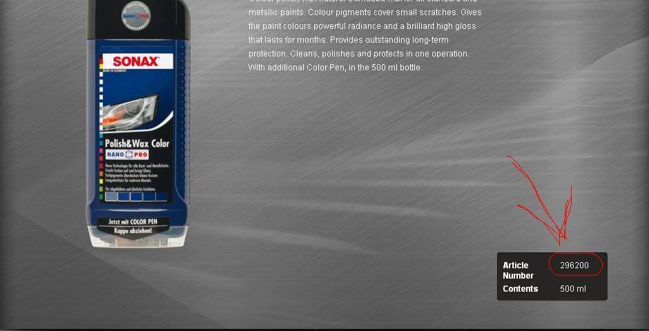 Ага, а цвет вам экзист сам подберет? Любой, навскидку? А, тупанул, походу цвет в артикуле забит, то есть 296200 синий, 296100 черный и так далее. Дмитрий, пара вопросов. 1. В этой штуке точно есть карандаш? Что то его не видать. Он в банке что ли спрятан? 2. У меня цвет 742, то есть сине-зеленый. Мне, наверно, судя по картинкам, больше темно-синяя полироль подойдет?