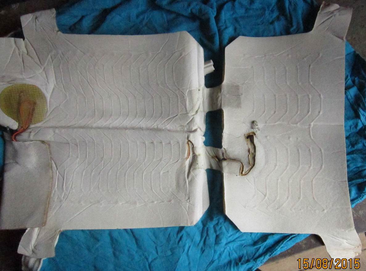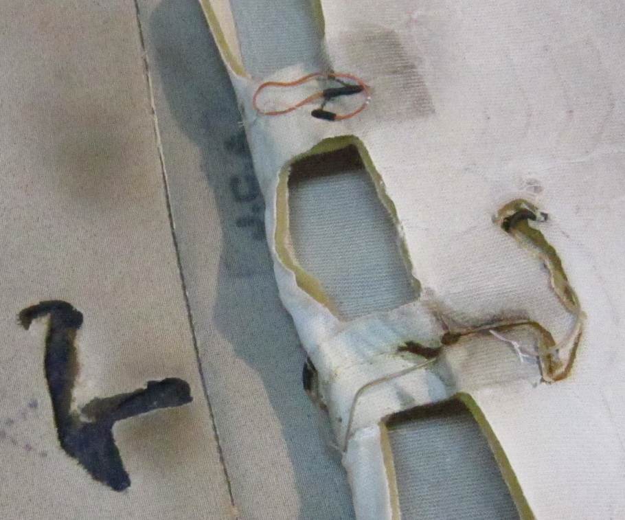 Прожженную обивку, оборванную нить обогрева, причем оборванную в нескольких местах. Вложение: