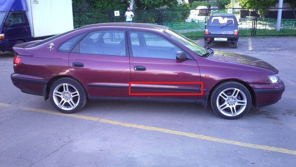 Avdey Эти боковые полосы называются молдинги и клеются они на КРАСНЫЙ двухстороний скоч фирмы 3м( из скочей только он) возьми рулон скотча 6мм и в две полосы приклей, обязательно обезжирить в начале и отодрать старый скотч)