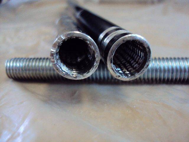Небольшой отчет по ремонту. Некоторое время назад заметил, что спинка водительского сиденья перестала правильно двигаться. Левая сторона, там где ручка регулировки, опускается и поднимается, а правая стоит на месте. После снятия и разборки сиденья обнаружил, что стерлись шлицы у поперечины рамы сиденья (деталь 72345-20010), попросту алюминиевая трубка со шлицами внутри. Покрутив её в руках и позаглядывав во внутрь, обнаружил, что шлицы по краям полностью слизаны, но дальше идут по всей длине трубки. Далее делал так: 1. С обеих сторон по краям трубки нарезал внутреннюю резьбу длинной 5-6см. Нарезал длинным болтом М10 из которого потом сделал шпильку (не было метчика под рукой). В тисах трубку не зажимал, что бы не сплющило, помощник держал ее плоскогубцами. 2. Разрезал трубку ножовкой. 3. Развернул половинки трубки резьбой во внутрь, шлицами наружу. Резьбовые части соединил при помощи шпильки, еще поставил гровер на всякий случай. Получилась трубка с целыми шлицами по краям. Теперь все крутится, поднимается и опускается.