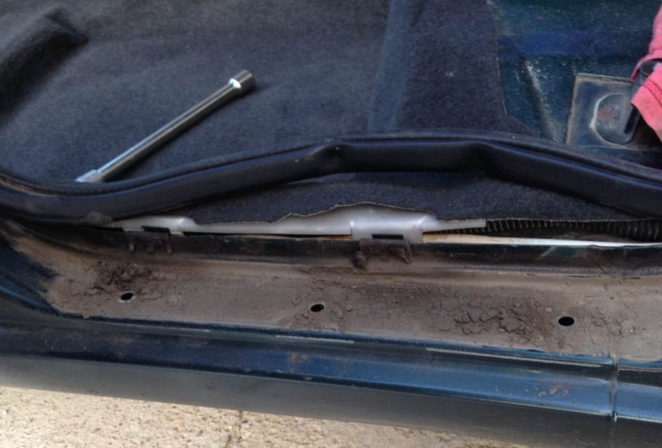 Здравствуйте. Не нашел отдельную тему про багажник. Такая проблема: в багажнике всегда сыро. Скорее всего, в зад был удар когда-то и сделано немного кривовато, сильные зазоры. Металл потихоньку отваливается от внутренней части багажника, особенно пострадала ячейка, в которой лежит домкрат: там откровенные дыры, и руками все это дело легко крошится. Что можно предпринять ?