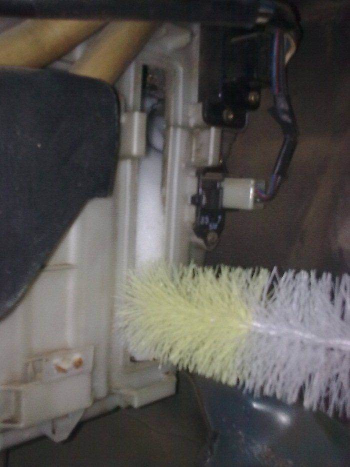 И желательно, пока активно работаете ёршиком, постараться подцеплять грязь снизу блока испарителя - т.к. именно там она в большинстве случаев и скапливается. Также очень рекомендую запастись ведром с чистой водой, и после нескольких движений ёршиком, его ополоснуть в ведре. (опять же на фото всё видно, почему и зачем).
