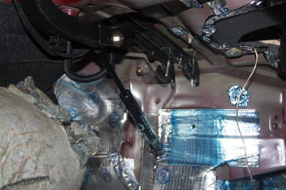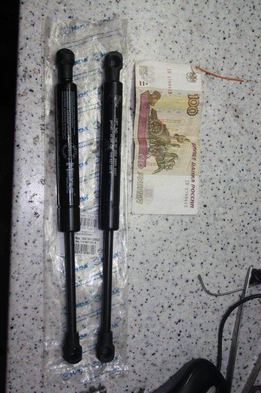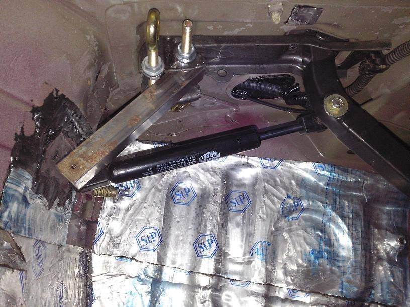 После установки спойлера ГТИ и шумоизоляции крышки багажника вибропластом столкнуля с проблемой открывания багажника, покурив форум пробовал подставлять болты и гвозди под торсион, но результата ноль  . Не долго думая  решил озадачиться установкой пневмо амортизаторов. Поискав в интернете инфу был разочарован- ничего нет!!! С какой машины искать, какой длины, какой силы, хрен его знает. Пришёл к парням в Эксист говорю так мол и так, как определиться? А они мне на складе нашли пневмик один, говорят возьми попробуй  Я его схватил и в гараж и вот что из етого вышло: Добавлено спустя 23 минуты 3 секунды:.. Добавлено спустя 5 минут 37 секунд:..Единственный нюанс на сей день, это слабые стенки стакана и при открытии и закрытии багажника они гуляют, но пока времени нет доработь крепления. Возникали мысли соеденить оба уголка между собой для жёсткости, там даже Лёхина распорка к динамикам примагнитилась, но как я уже говорил некогда пока.