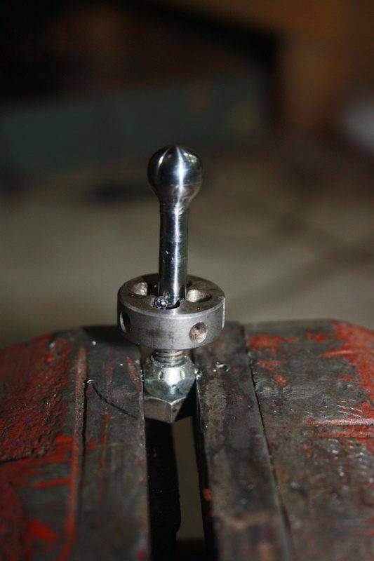 Комментарий к файлу: Зажимаем болт в тисах и навариваем на его шляпку шарик из сварочной проволки.