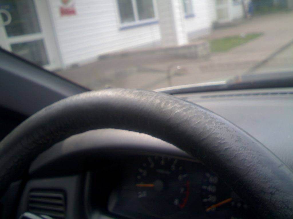 Приезжаю в гараж, а там у соседа панелька тряпочкой белой накрыта.... заинтересовался.... подошел спросил.... оказывается у него тоже руль облезает... дает мне балончик с химией и говорит вот попробуй....