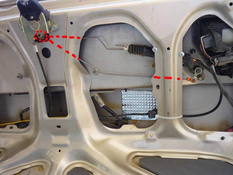 Комментарий к файлу: Извините за качество фото,другой под рукой нет. Вот так оттягивается тяга открывания багажника.местоположение этой штучки вычислил эмпиричекским путем