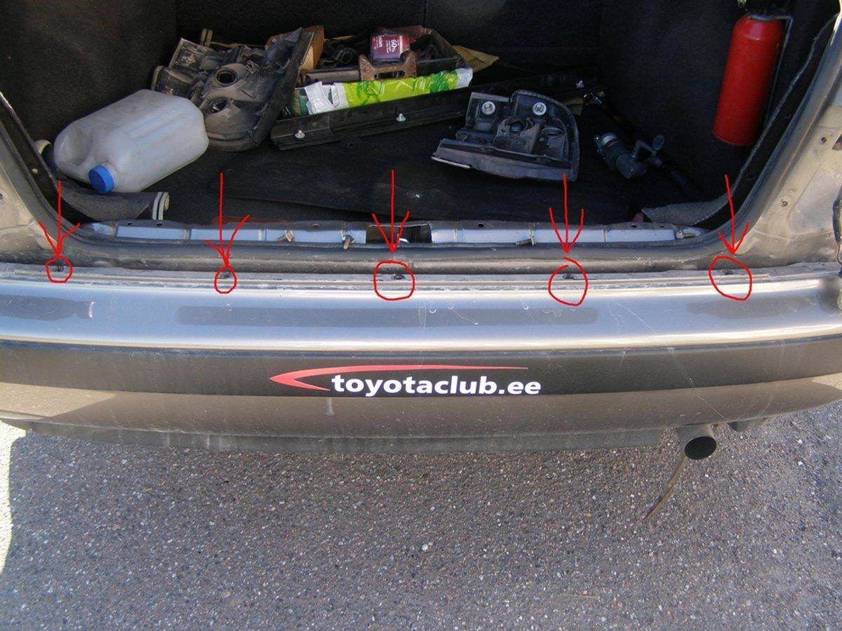 Снял задний бампер: открутил 5 шурупов сверху, 3 снизу, по 4 шурупа держат брызговики и по 1 с каждой стороны сверху от брызговиков - внутри. Фото 1 и 2. Зад. фонари можно было и не снимать, но я снял на всякий случай.