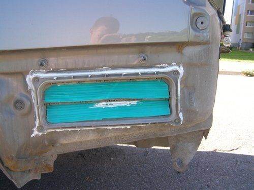 Так как на решетках должны стоять резинки, предотвращающие поподание пыли в багажник и салон (из багаж.) (У МЕНЯ ОНИ КУДА-ТО ПРОПАЛИ), я заменил их на другие (вырезал сам! ничего сложного, главное материал подходящий найти). После жирненько намазал уплотнители решёток силиконом и прикрутил назад, после хорошенько прошёлся вокруг, чтоб исключить попадание воды в багажник.