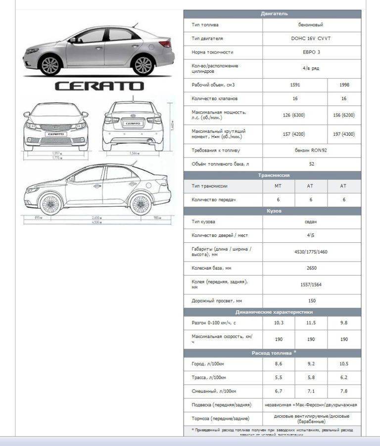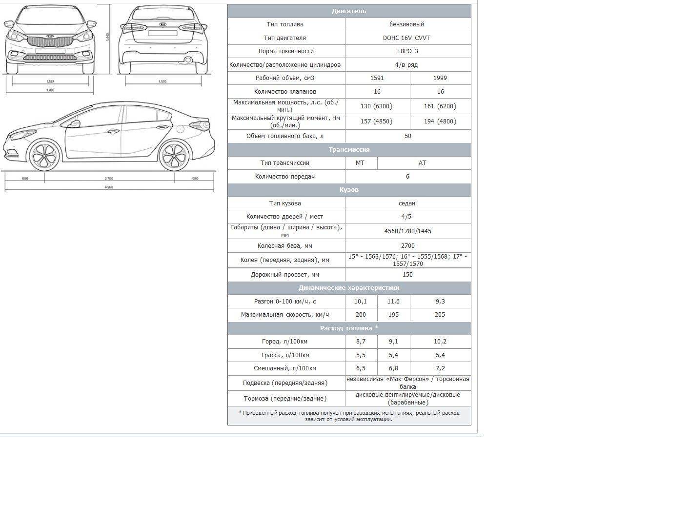 Характеристики Добавлено спустя 1 минуту 35 секунд:well писал(а): скажу что фотки компьютерной графики ты нам давай живое,что пощупать можно.. Ну что сказать, руками щупал в салоне сидел, двигатель слушалЮ как едет видел, всё одним словом - тачка. Думал места будет мало, ан нет, сзади сидш как король, ненапрягаясь, места навалом Добавлено спустя 3 минуты 23 секунды:Ссорито было немног оне то, вот характеристики новой цератки Добавлено спустя 2 минуты 29 секунд:Вот тут всякие комплектации, на вкус и цвет, но мне больше всех нравится 1,6 Premium+, там есть всё что мне хочца видеть в своей машине. http://www.aziaavto.kz/kia_cerato_new_kompl.htm