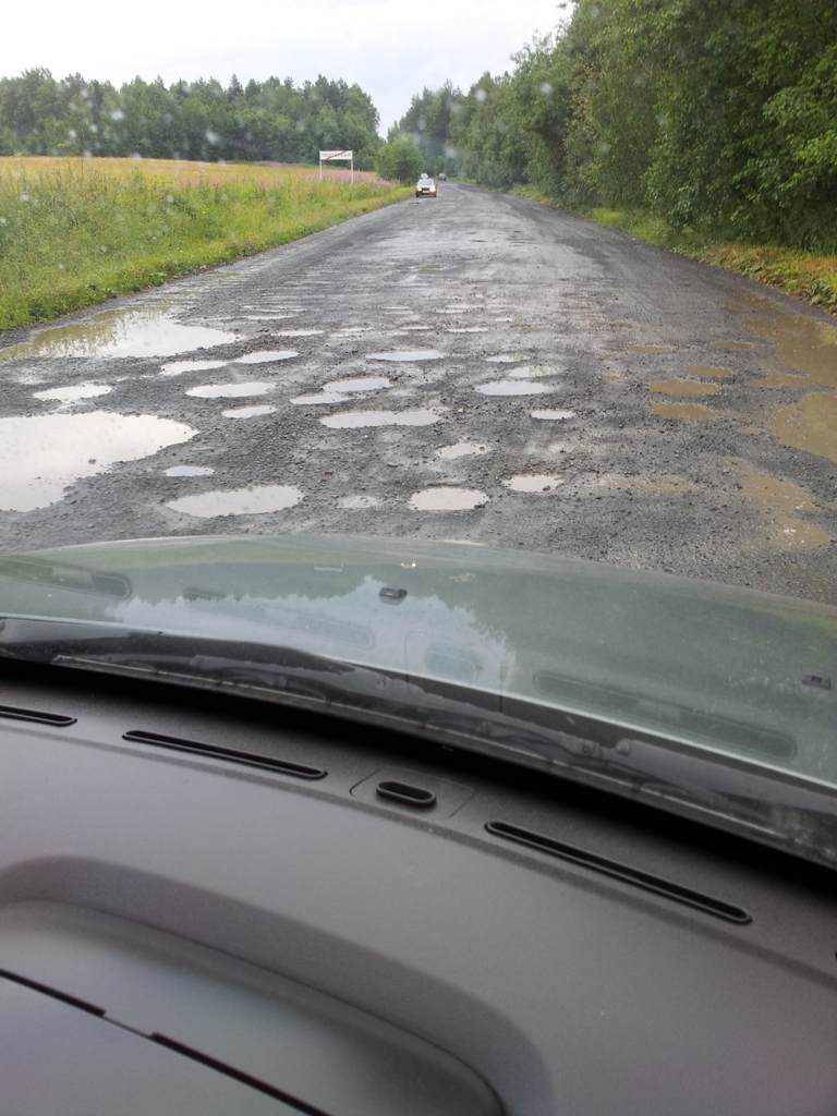 В общем немного поясню еще: машина по большей части будет использоваться в городе (как и говорил 80%). Дороги в городе вошли в топ-5 "самые худшие дороги России", хотя у нас город меньше 50 тысяч население, но "яма на яме". С начала мая по конец сентября будем ездить каждые выходные на дачу (туда и обратно). По весне там дороги просто ад. В 2017 году весна была поздняя и лесовозы "разбомбили" по самое небалуй... колея была такая, что пузотерки еле-еле могли проехать, у кого паркетники/внедорожники, то без проблем. Потом дорожники дождались, когда дорога будет суше, чуть подлатали. Грунтовая дорога составляет 20 км + 6 км лесная дорога (отсыпка крупной фракцией). Грунтовая дорога в обычные года - "стиральная доска". На Карине мы ездим, но подвеска страдает сильно, ям куча. Для примера скинул фото, это когда дороги "более-менее" после дождя, но бывает и хуже. По лесной скорость 15-20 км/ч, быстрее поедешь - или как на козле скачешь или машина развалиться того и гляди. Вот и ищу машину повыше, проходимее карины, но желательно чтоб в обслуживании была недорогая. Жене сказал, если бы на Карину поставить большие колеса и раму - ей бы цены не было. Ну вот как то так. Поэтому и спрашиваю на форуме совета. Жену в принципе устроит паркетник, лишь бы "был современный и в салоне не стыдный". Про Прадо 95 говорит "салон такой же как в Карине, не вижу ничего нового, машина лохматого года." (  ). Вообще мой идеальный вариант (и жены тоже) - Прадо 120, но пока с деньгами не получается. Говорю жене, давай еще год подкопим... а она "3 года без отпуска я уже не вытерплю"  . Так что пока смотрю варианты, а может плюну на все и еще год потерплю и буду на 120 прадо смотреть. И еще про багажник: у тестя Фиат Добло, вмешается все что угодно (но машина как по мне пенсионерская), у знакомых был Мурано 2, вроде внешне машина большая, а открыли багажник и посмеялись, туда кроме сумок с продуктами особо ничего не положишь. Вот и хочется мне машину с достаточно большим багажником. PS. Спасибо всем кто откликнулся.