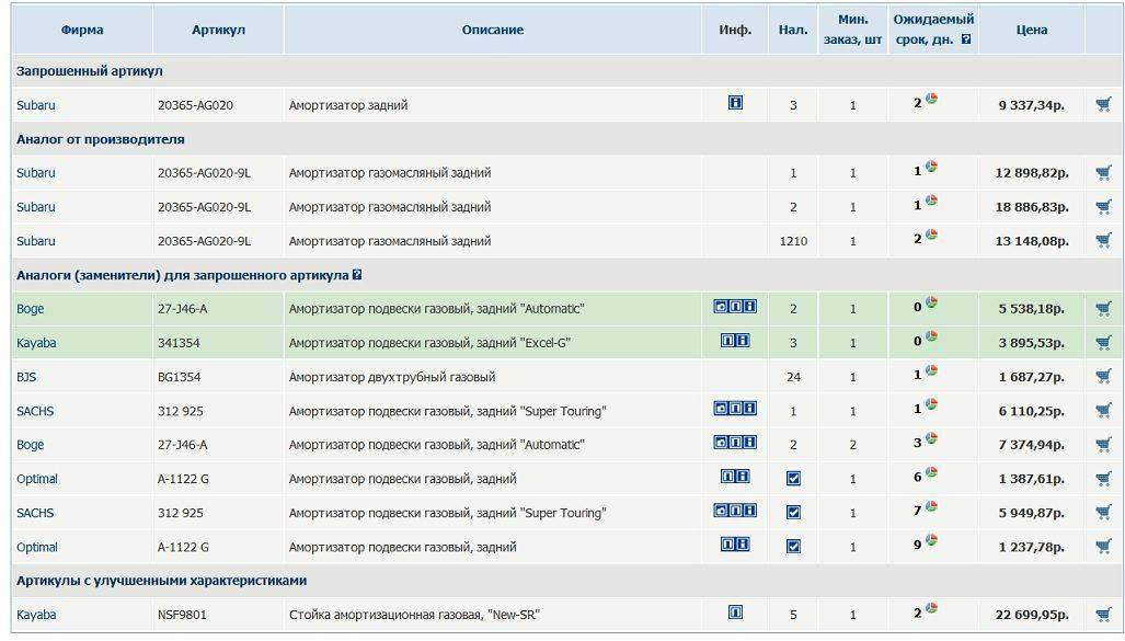 Константин Жмаев писал(а): к примеру задняя подвеска у Субару стоит космических денег. 28 тысяч за один аммортизатор.  Да откуда такой ценнег?! Если только эта оригинальная стойка с функцией поддержания постоянного уровня вне зависимости от нагрузки разве...  Народ, если эти стойки "кончаются", ставит себе обычную каябу эксельджи и не обламывается ни разу... Я тут стойки для примера приведу - что мне экзист выдал...Подозреваю что на РАВчик не сильно дешевле подвеска, если вообще дешевле. А также ещё пару заказанных мной позиций - стойки стаба и пару рычагов (оригинал, ибо он ходит намного больше заменителей - это то, на чём экономить не стОит).  Тоже ничего "космического" не увидел в плане цены. Ну а ГРМ...Ну фиг знает. После тойоты кажется дорого, да. НО! Делается это ведь на 100 тысяч пробега! Тоже ничего сверхразорительного не узрел. По самому главному вопросу темы отвечу так: Если нужно просто добраться от точки А в точку Б - тогда Равчик несомненно. А если ещё получить при этом какое-никакое удовольствие от вождения - тогда Субарик конечно же!