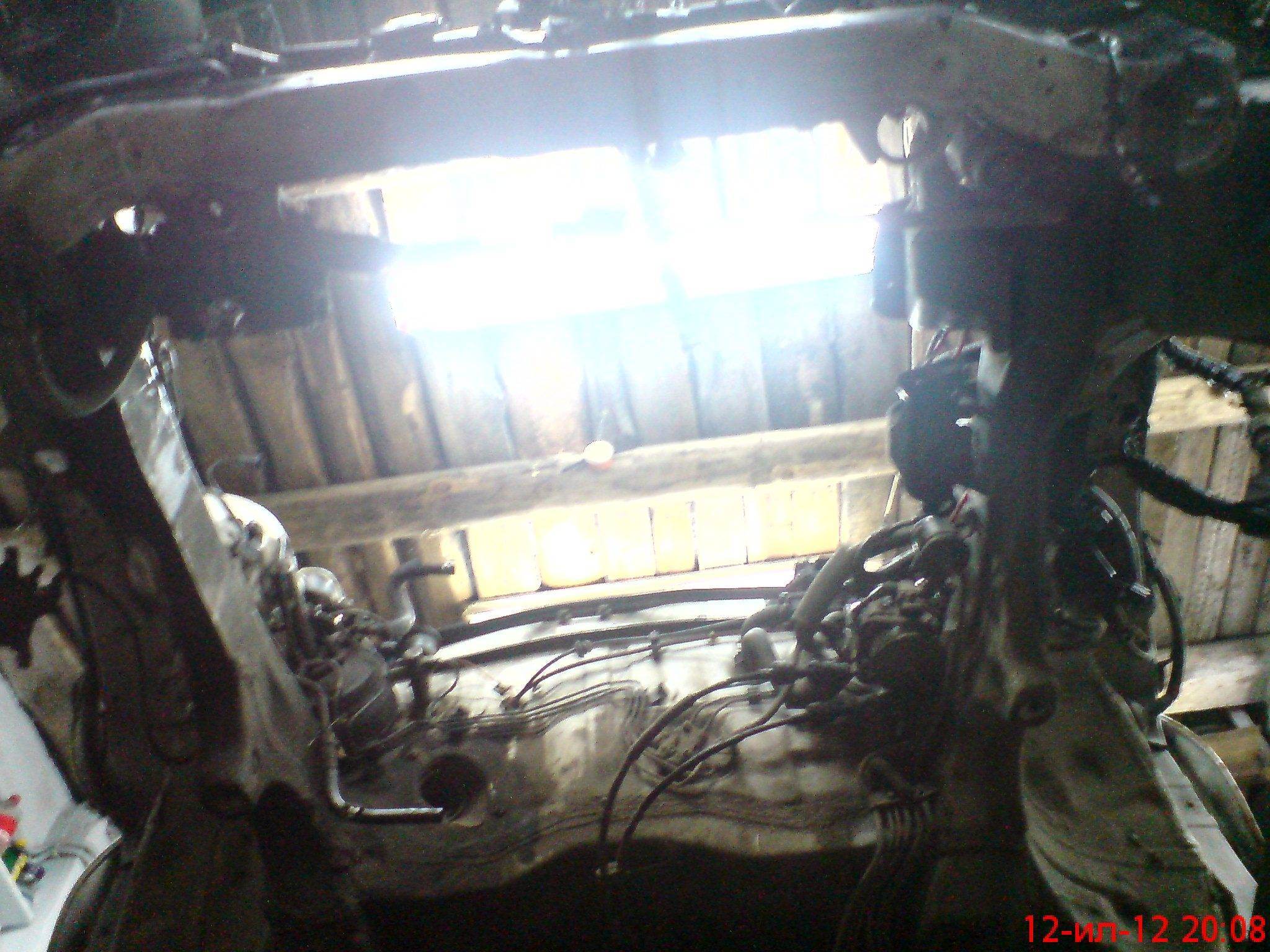 К вечеру вытащили все:двигатель,КПП,балку с передней подвеской,рейку,бампер и крылья тоже сняты. Есть ощущения что машина не уедет из моего гаража никогда  Вложение: