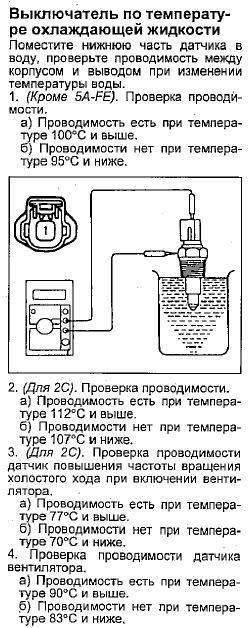 Короче 3 я нашел, сейчас опубликую. Добавлено спустя 2 минуты 37 секунд:Этот у тебя в радиаторе, он двухпроводной, и обрати внимание на температуру. Добавлено спустя 3 минуты 41 секунду:Это тоже включатель вентилятора, но на меньшую температуру рассчитан почему-то на меньшую температуру и приписка есть "for heater idle up", как перевести правильно? Добавлено спустя 3 минуты 24 секунды:блин, фотки по прядку добавляются. Короче на самой нижней фотке датчик температуры (терморезистор) но он с одним проводом. Добавлено спустя 4 минуты 2 секунды:Прикол в чем? два включателя вентилятора. Один в верхней точке, второй в нижней. Или один резервный, или, если буквально перевести приписочку как "для нагревателя холостого хода"... что получается? у меня мысль крутится а реализовать не могу. Добавлено спустя 6 минут 39 секунд:пардон. Датчик, который на третьей фотке стоит не сзади а спереди, это на приборку. Я на схеме немного не так понял. Нет на схеме второго датчика сзади, только один (на второй фотке) вот тут все видно: http://www.japancats.ru/TOYOTA/scheme.aspx?modelid=9ec06a18-e7b7-489b-806c-4f6e52097a25&pid=A4E01706&office=ru