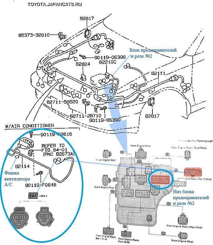 termed писал(а): разоряют Ну а как по другому Вобсчем, что мне нужно из той косы, смотри фотки и запоминай, тебе потом надо будет найти это там, если не хочет отправлять всю косу. 00 схема расположения нужных разьёмов и блока кондея 01 Фишка которая включаеться в блок №2 (на фото 00 она обозначена красным цветом) 02 Фишка EA1, тоже на этой же косе 03 Фишка вентилятора, она у тебя сейчас на косе кондейной как и положено, аккуратно выходит из блока №5 кондейного 04 Внешний вид на всю эту беду и сам блок реле кондея №5PS все эти фишки необходимо аккуратно выплести (больше несрезать ничего, всё делаеться аккуратно, ручками ) из общей косы, сфоткать и показать мне для конкретезации