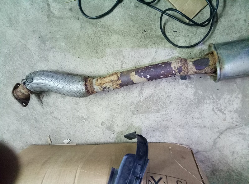 Выхлопная - одно целое? Там фланцы где-то должны быть примерно в полуметре от гофры. Посмотрел в интернете - у меня немного не так выхлопная идет. Гофра на колене, потом вставка почти прямая, с подвесом, а потом уже длинная часть с резонатором и банкой. Вот фото из интернета.....
