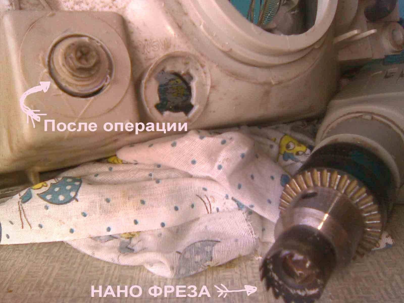 2. Затем Супер Нано Фрезой на больших оборотах врезаемся в разметку, но можно обойтись и без фрезы - пластик мягкий можно выцырапать шабером или чем-нибудь подобным.
