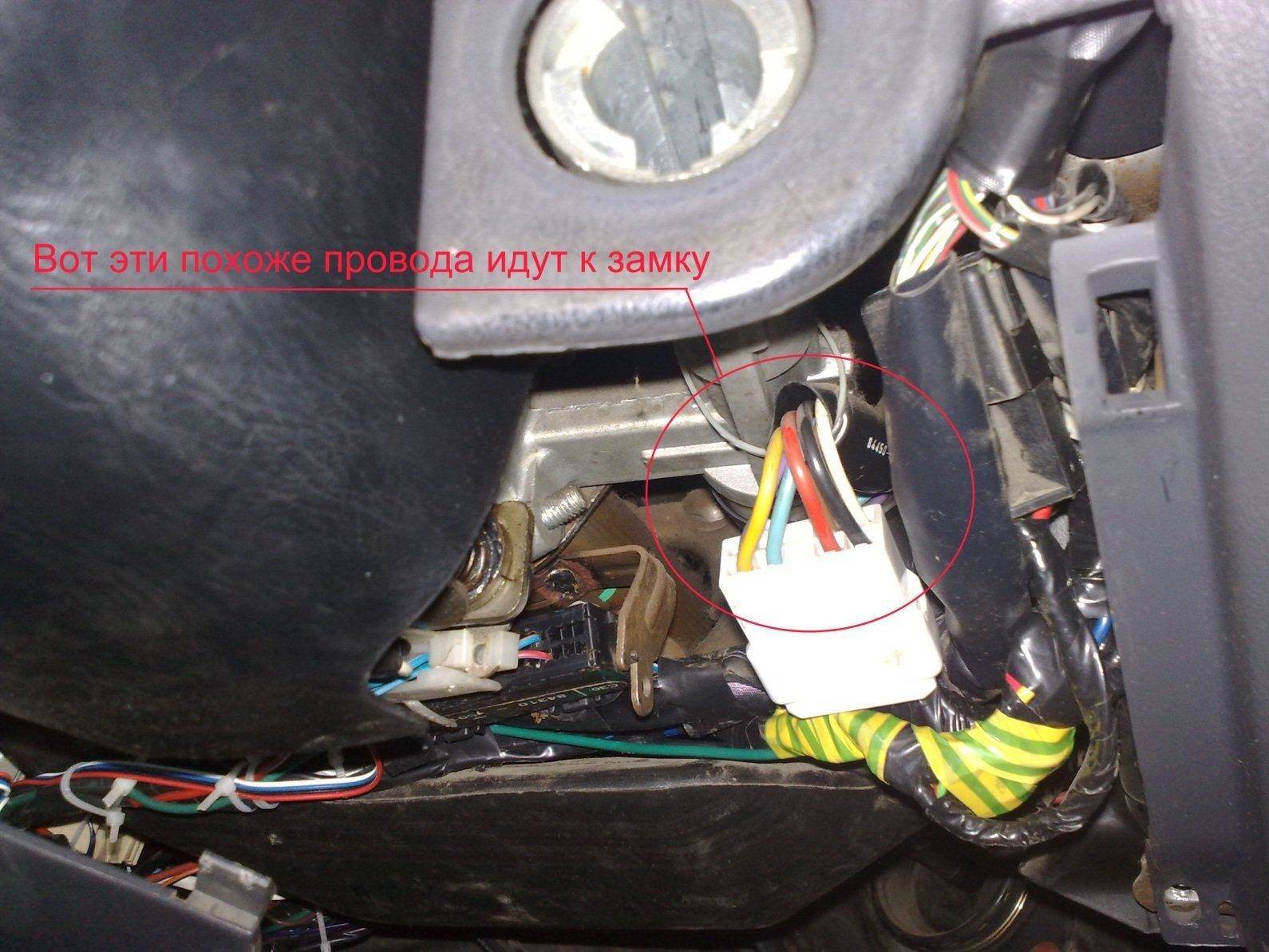 Вообщем и меня постигла проблема с этим гребаным замком зажигания , но ситуация не такая как у всех , у меня развалилась похоже контактная группа , личинку я вынимал , она работает нормально , а вот при повороте той пластины что вращает личинка , ноль эмоций , сначала как сел в машину повернул ключ и вроде как бы нормально все , панель загорелась ключ еще дальше поворачиваю что бы завести а мне в ответ тишина стартер молчит , ну я ключ в краенее левое положение потом обратно в положение как завести , и что я вижу , теперь и панель сама не загорается :) , вообщем контакты остались в положении АСС , так как магнитола и часы светятся , личинка поворачивается как и раньше во все положения , но панель без изменений , и еще заметил что теперь ключ с личинкой поворачиваются очень легко , нет того подпружиненного сопротивления когда заводиш или когда из одного положения переводиш в другое . Вообщем стоит моя карина уже два дня на стоянке у завода , уехать на ней не получается , и еще как назло минус 15 на улице и ветрище , ковыряться с ней на улице как то не айс . Мысль меня посетила что завести её хотябы путем перемыкания проводов , что бы до гаража доехать , а там я бы замок разобрал и посмотрел что к чему . Друг электрик что ставил мне сигналку посоветовал вообще сделать завод машины с кнопки как на спорткарах , тазоводы обычно любят такое ставить себе , если с замком будет гемор нечеловеческий , то я наверное всетаки поставлю кнопку СТАРТ/СТОП . А пока хотел бы спросить совета какие провода перемыкать и как именно ? Как я понимаю надо сначала перемкнуть провода некоторые чтобы вывести панель в положение когда на ней все значки горят , а потом уже перемыкать другие провода что бы стартер запустуть . Ща выложу фото три штуки , пока ничего не пишите