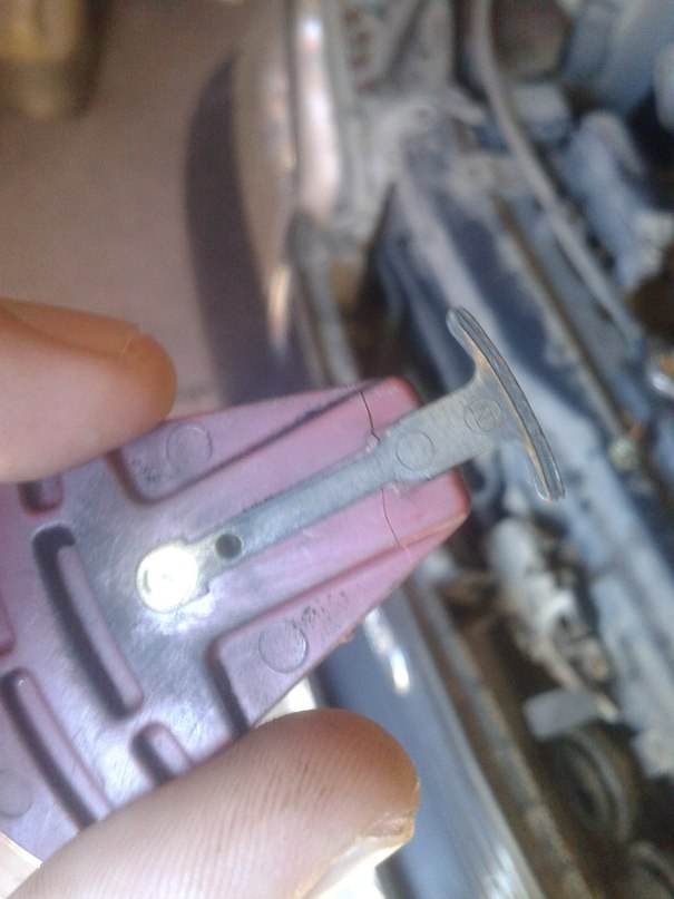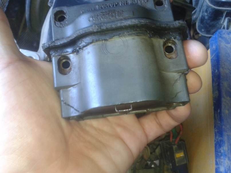 Итог сегодняшнего дня: Вспомнил, что у одного из друзей в незапамятные времена была тойота с таким же двигателем! (Спасибо ALEX-72, заставил-таки покумекать над этим  ) Вызвонил его и он, как раз, оказался свободен. Приехали с ним в гараж и он своим опытным взглядом (а в двигателях он реально мастер!) начал проверять работу двигателя. Заведи, заглуши, свечи повыкручивал: и так искру проверил и эдак. Проверил работу ДХО (он немного тупит, надо контакты подпРавить), шланги поснимал, понадевал, проверил бензонасос. В общем,шаманил с ней  И, в итоге, смело говорит: "снимай трамблёр!". Он меня сразу успокоил, что как всё на место соберу, он приедет со страбоскопом и всё сделаем)) В общем, как только сняли трамблёр... вот оно, етить его за ногу! Катушка! Лопнула! Да и конденсатор был не в лучшем состоянии. И, мало того... сколько же колхоза было внутри трамблёра!!! Жаль что Тойотовский Бог не ху*чит молнией таких "мастеров"  ! И, как на удачу, лежал у меня трамблёр с 7a-fe. Разобрали и вот оно - целёхонькая, красивая катушка! Счастье)) В общем, поставил её, поставил с того же трамблёра хороший конденсатор и теперь осталось всё собрать и проверить работу. Но вылез единственный нюанс... Фото ниже. Вот так выглядит второй разъём на моём трамблёре... Точнее даже не разъём, а что-то франкенштейное! И каким-то чудным образом "это" работало! В общем, как всё соберу, отпишусь сюда)) А пока что - пойду по форуму искать нормальный разъём для трамблёра. Кстати, если у кого есть - милости прошу в личку)))