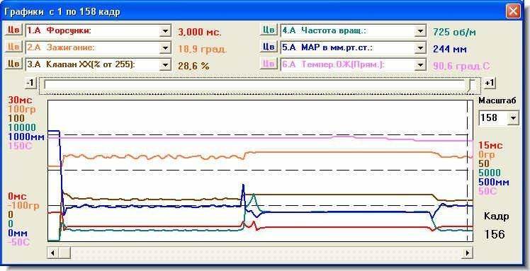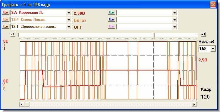 2) Я так понимаю про "Смесь Левая"-это лямбда, а нормальное число колебаний за 10 сек. (грубо 10 кадров) это больше 8 ИЗМЕНЕНИЙ значения датчика. И кстати правильно ли я понял, что некоторое запаздывание сигнала с датчик это не способность проги опрашивать каждую секунду, а примерно через 1,2-1,3 с.