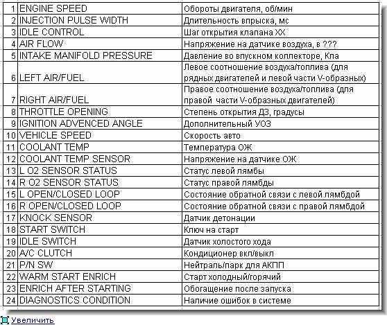 Виктор77 писал(а): почему не получается скачать Отправил мылом  Enakin писал(а): 3.А Клапан ХХ(% от 255): - енто что за парам У тойоты есть несколько типов клапанов ХХ. - Есть на базе шагового двигателя. Там шагов от 0 до 125. Именно эти шаги и выводятся в протокол - Есть КХХ соленоидного типа, у нас такой. Там измеряется Idle Duty, что-то вроде степени открытия, измеряется в процентах. В протоколе 100% соответствует значению 255. Соответственно нам и выбирать надо КХХ (% от 255). Нормой считается значение на прогретом ХХ - до 40%, если выше, то надо запланировать промывку клапана  - КХХ (% от 125) - этот параметр на всякий случай придумал chem407, чтобы запутать вас всех нафик  Очень рекомендую для изучения матчасти Тойоты ее же учебник - http://carinae.denser.ru/forum/viewtopi ... =10&t=2877Добавлено спустя 4 минуты 41 секунду:Enakin писал(а): На кой по букварю если график все показывает, или ты думаешь что прожка не успевает ? Конечно не успевает. За 10 секунд где-то 8 кадров. А для 8 циклов лямбды (бедная/богатая) нужно хотя бы 16. А лучше еще больше. Так что цешку и букварь в руки