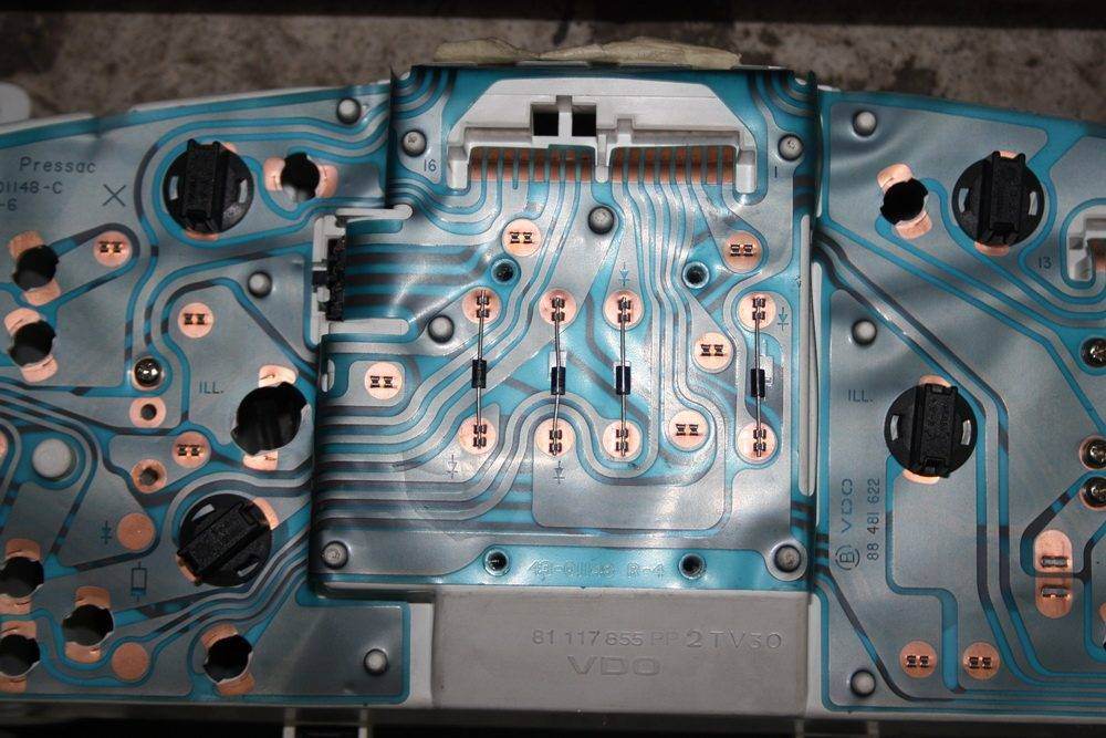 Санта Барбара часть три. Сегодня полез в приборку снова. Стрелка уровня топлива подвирала - решил поправить, а за одно захотел прижать чуток посильнее колпачек стрелки спидометра (из под колпачка пробивается красненький свет). Итог - оторвал пружинку от оси стрелки спидометра. Теперь стрелка не возвращается. С грузиком для стрелки не стал заморачиваться. Уровень топлива даже и проверять не стал. Оставил машину в гараже, на неделю уезжаю на учебу в Москву. Теперь надо искать либо блок спидометра либо приборку Т22.