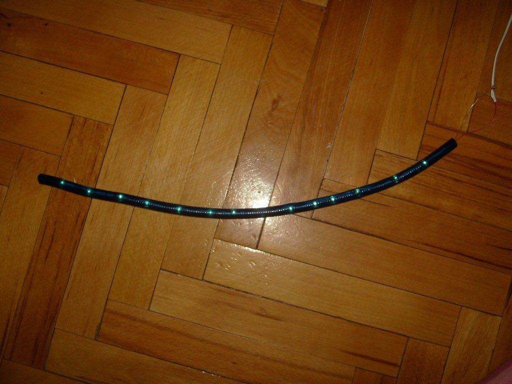 Вот решил заморочиться и сделал. Взял дюралайт который работает от 220в разрезал его вдоль, поддел и вытащил лампочки( см фото 1), потом переделал схему которая в нутри дюралайта (см выше фото схемы), вот что получилось(см фото2), вставил переделанную гирлянду обратно и подключил к Б.П. для галогеновых ламп 12V AC(см фото3), только если будете подключать к авто провода питания должны быть толще чем у меня т.к. 12V это не 220V и потери начинаются очень быстро, чем толще провод тем лучше. Вот фото инструмента использованного мною(см фото 4). Метр дюралайта на 220V стоит 70р, а на 12V 600-700р. В итоге получается экономия на метре примерно 500р. Если кому не нравится то что с одной стороны осталась щель после вскрытия, можно одеть прозрачную термоусадку на дюралайт, и усадить ее, но света станет меньше. Всем удачи.
