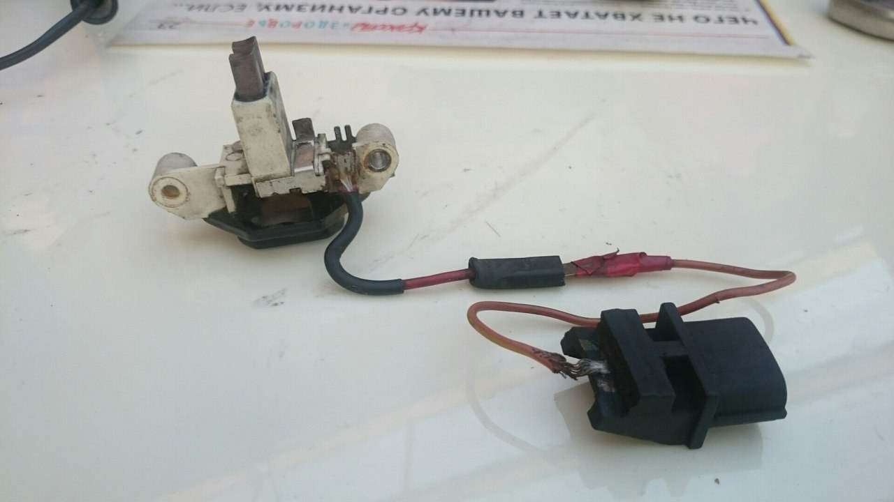 Vitek писал(а): serg10rus писал(а): ? куда от нижней щётки Никуда. Так и остаётся от нижней щётки к среднему выводу таблетки, и больше никаких соединений. Впрочем, точно так же и на ТАЗе, как видно на фото. Левый (1-й) соединяется с массой, на правый (2-й) клемма нахлобучивается (на Карине это к диодному мосту), а центр только со щёткой. понятно . 1 не работает 2 генератор нагрелся за 3 минуты работы двигателя = могет такое быть и причина ? что проверять? что звонить ? до этого стоял вообще колхоз провод от верхней щётки шёл на среднюю клемму штекера фото