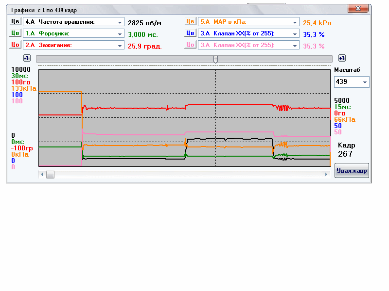 gerzolik писал(а): проседают обороты до 600,а как только прога кажет 82 гр.мозг становит ровнёхонько 750 и всё гуд,у тебя тоже такой ,вроде,трабл.Думал по проге чего угляжу-ан нет Тут штука в том, что обороты прогретого ХХ регулируются именно при температуре ОЖ 80 градусов и выше. Обороты прогревного ХХ формируются самостоятельно, без понукания, в зависимости от открытия КХХ и впрыска, прошитых в картах. Впрыск, правда, может еще регулироваться по показаниям кислородника. При этом мне попадались логи, по которым обороты прогревного ХХ вблизи 80 градусов были в районе 850-900 и проваливались до 750 при достижении 80 градусов. Отсюда можно сделать вывод, что открытие КХХ на прогреве рассчитано из некоторой средней загрязненности клапана ХХ. Если клапан совсем чистый, то обороты высокие (как у Вольдемарика  ). Если загрязнен выше среднего, обороты будут просаживаться (как у нас стобой) перед границей в 80 градусов. Стало быть, пора заняться промывкой БДЗ и КХХ Добавлено спустя 3 минуты 56 секунд:Makwein писал(а): мой мотроник не выходит на связь ни ВАЗовскими ни ВАГовскими ни какими-бы то ни было прогами кроме Тоетовской (которая может только читать и расшифровывать ошибки).