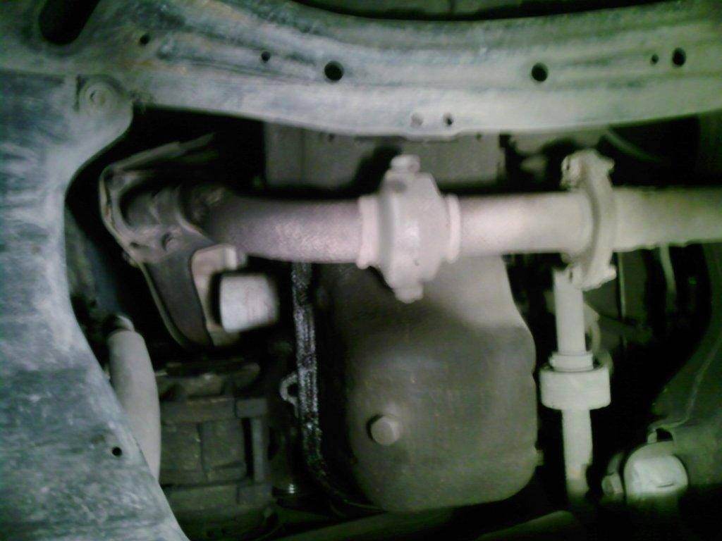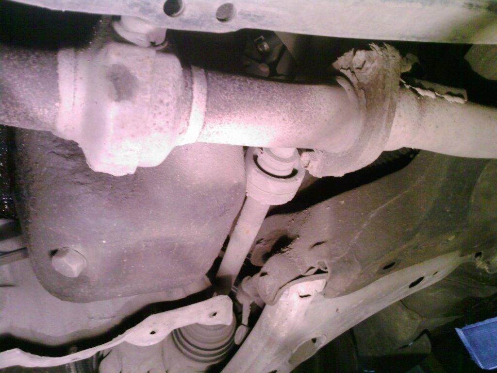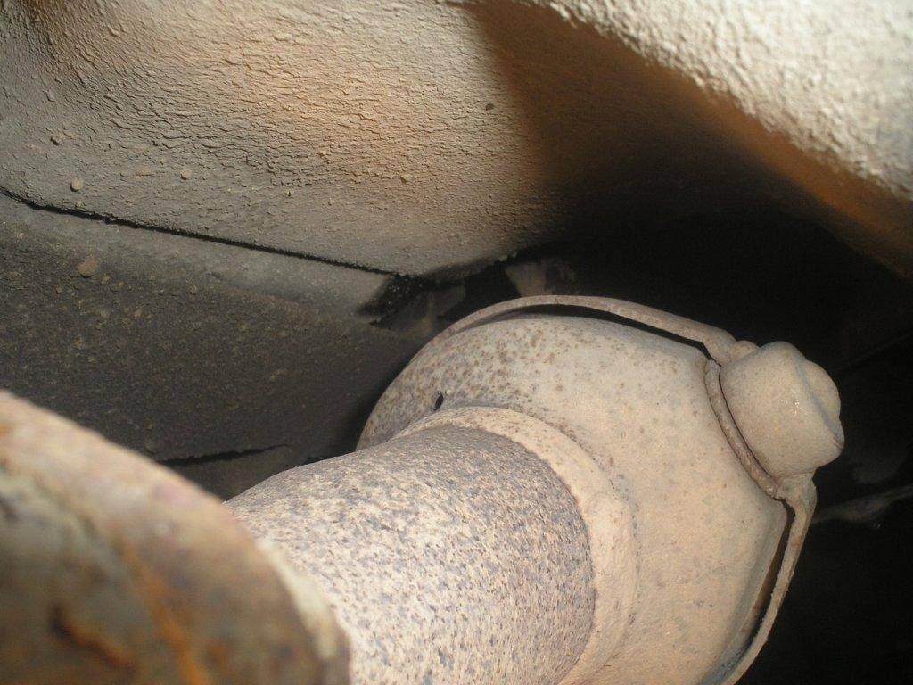 Вот чуть дальше стыка приёмной трубы со средней частью нет ничего?