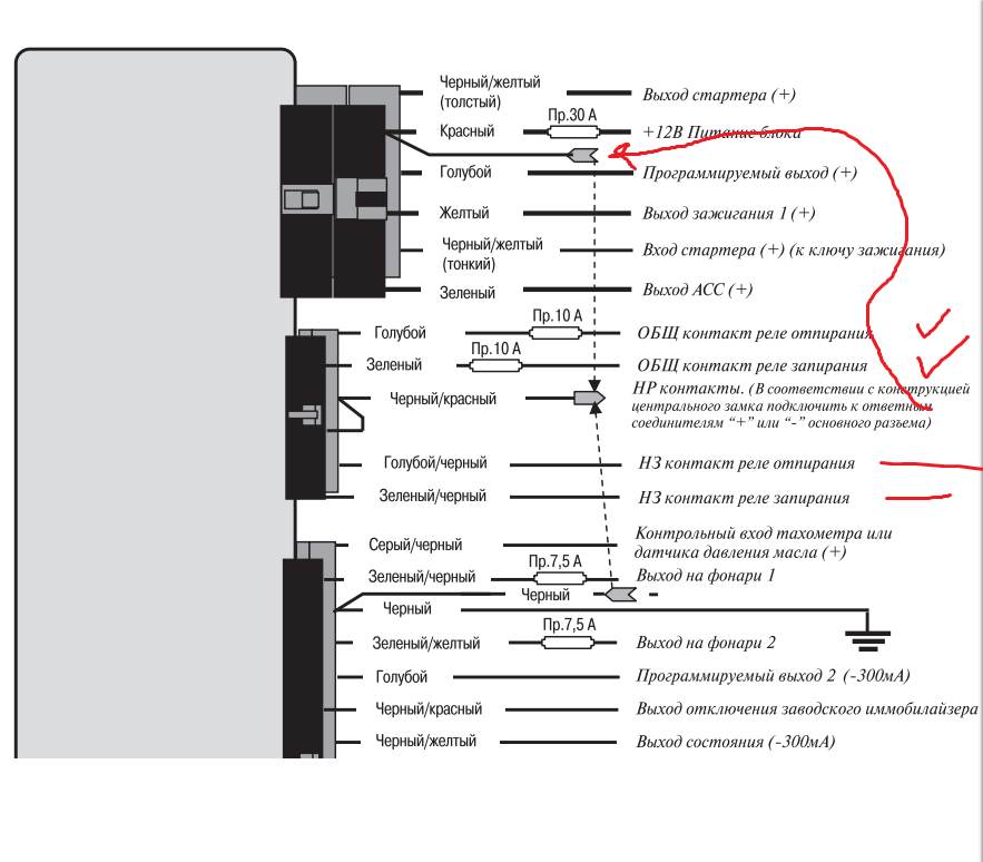 andron58 писал(а): Может концевик вод. двери подглючивает? на приборке он исправно отображается, горит когда открыто и гаснет когда закрыто, ничего не мигает. дверьми щелкает в любом положении двери. Добавлено спустя 11 минут 13 секунд:ALEX-72 писал(а): tab16Отключай сигналку от штатной проводки ЦЗ, только то что отвечает за "открыть-закрыть", посмотри как будет себя вести ЦЗ, если штатная электрика замков будет работать нормально, тогда что то не так подключил, схему подключения сигналки сюда выложишь, думаю разберемся tab16 писал(а): Подключил как старую видимо зря, хз что там накулибили в прошлый раз  , по схеме надо  я отключал, саму сигналку полностью, вытаскивал разъемы с нее, отвечающие за открытие закрытие. то есть исключил какое-либо влияние. Что интересно, прошлая сигналка 4 года только со мной работала исправно, с ней покупал. Начались косяки, что пульт в жару сигнал не видел. эта два дня не проработала то, что галочки подключил к тем проводкам куда шли провода от старой сигналки, прочерки не подключал. соеденил с плюсовым, согласно старой схеме, так как туда плюс идет на реле, видимо. меня еще смущала мощность на предохранителях, не могло оно повлиять или потребитель (катушка возьмет сколько ей надо) и ничего не будет. У меня не работает личинки в дверях и это очень большая проблема(